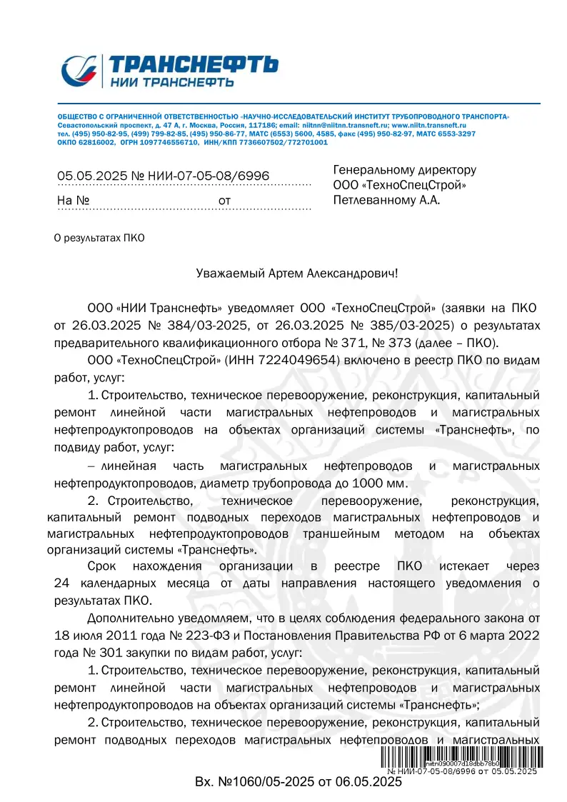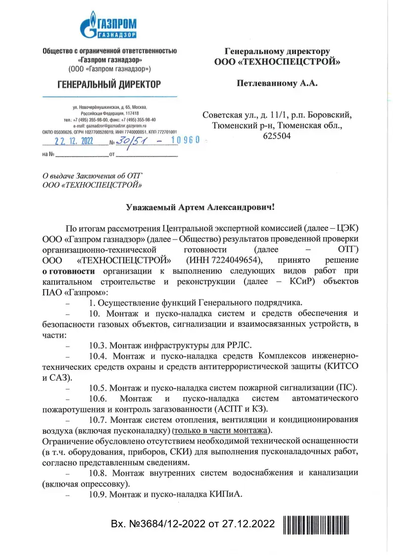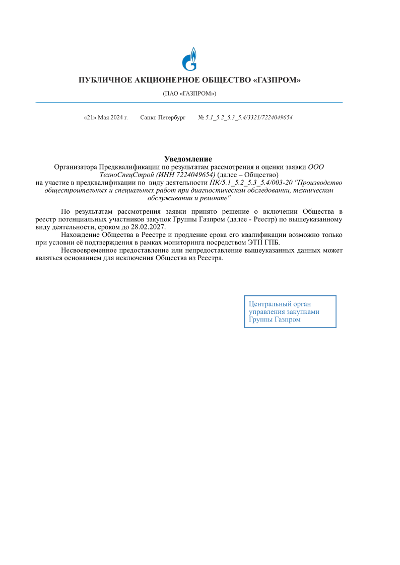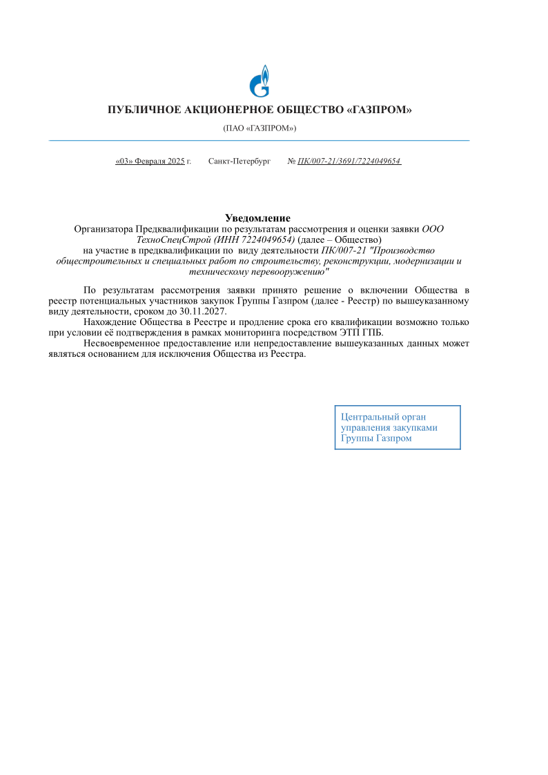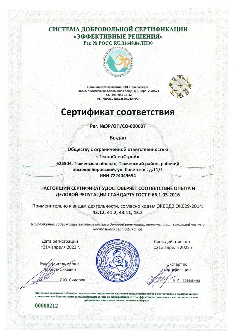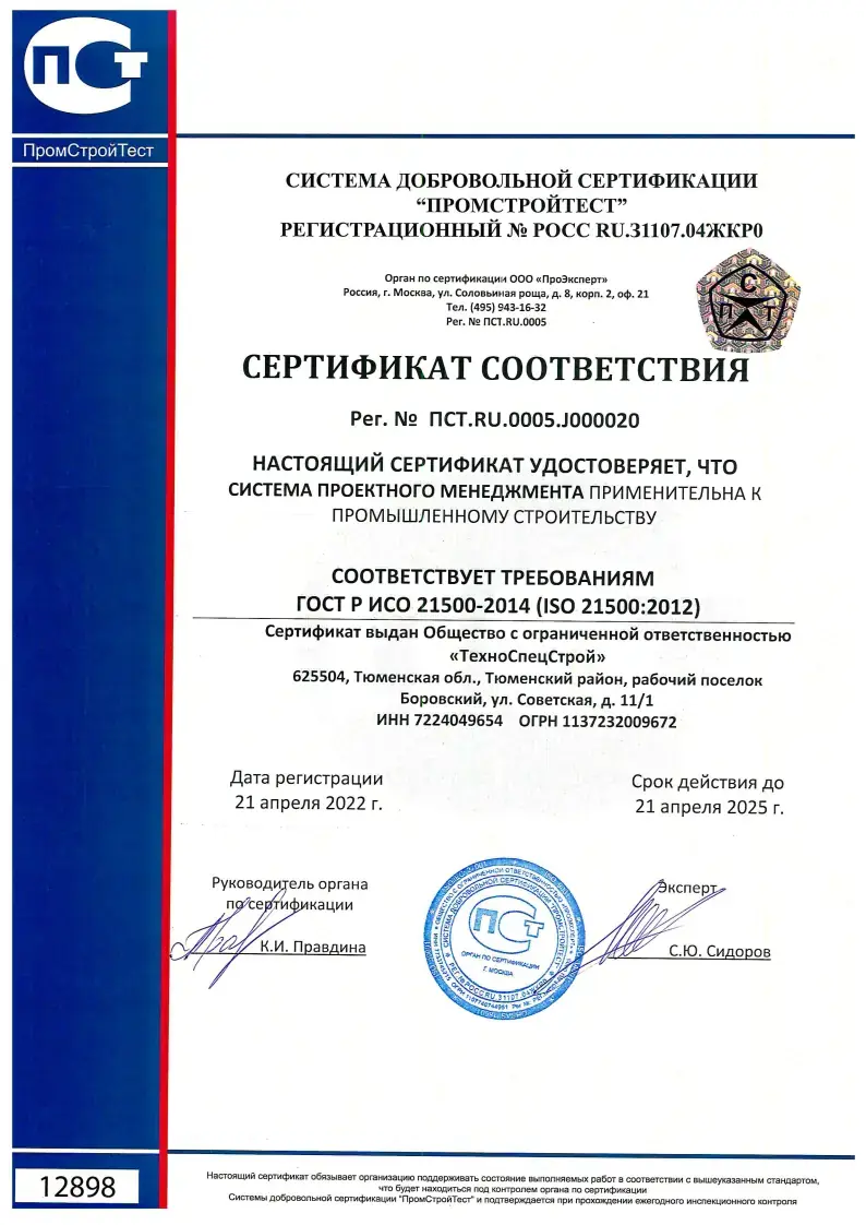 В ООО «ТехноСпецСтрой» действует интегрированная система менеджмента, включающая систему менеджмента качества (СМК), систему управления охраной труда и систему экологического менеджмента. Политика СМК определяет ключевые аспекты обеспечения качества, охраны труда и охраны окружающей среды. Позволяет обеспечивать конкурентоспособность, как на российском, так и на международных рынках.